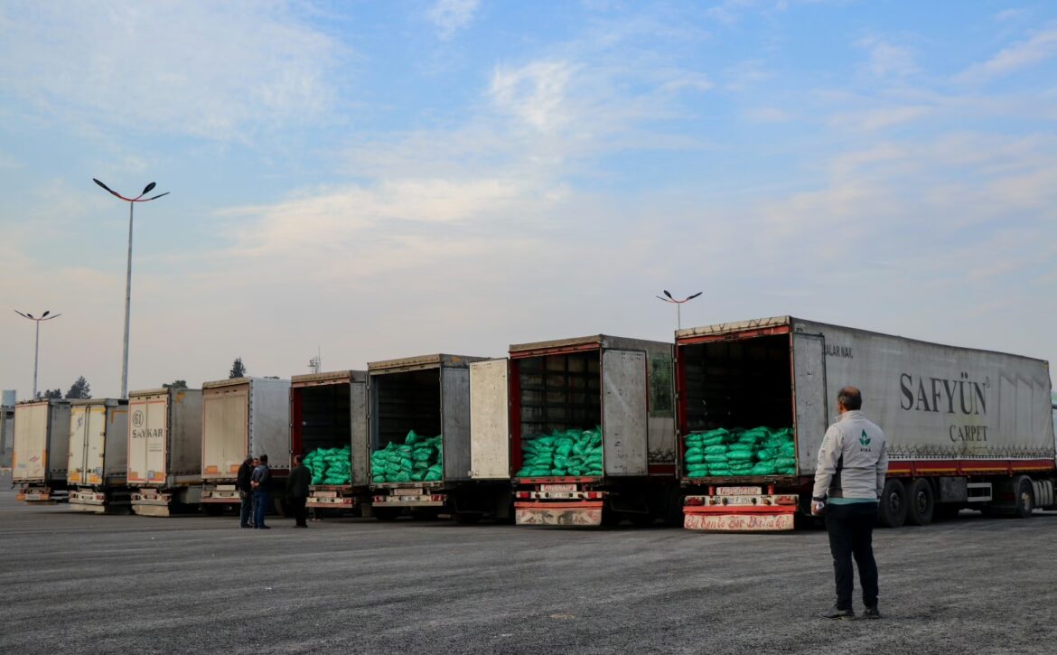وتحوي القافلة، التي دخلت إلى الشمال السوري عبر أربعة منافذ حدودية مع تركيا باتجاه مدن الباب وجرابلس وأعزاز بريف حلب الغربي إضافة إلى ريف إدلب، على خمس مواد أساسية وهي: (مواد تدفئة – بطانيات – عوازل – طحين – سلال غذائية)